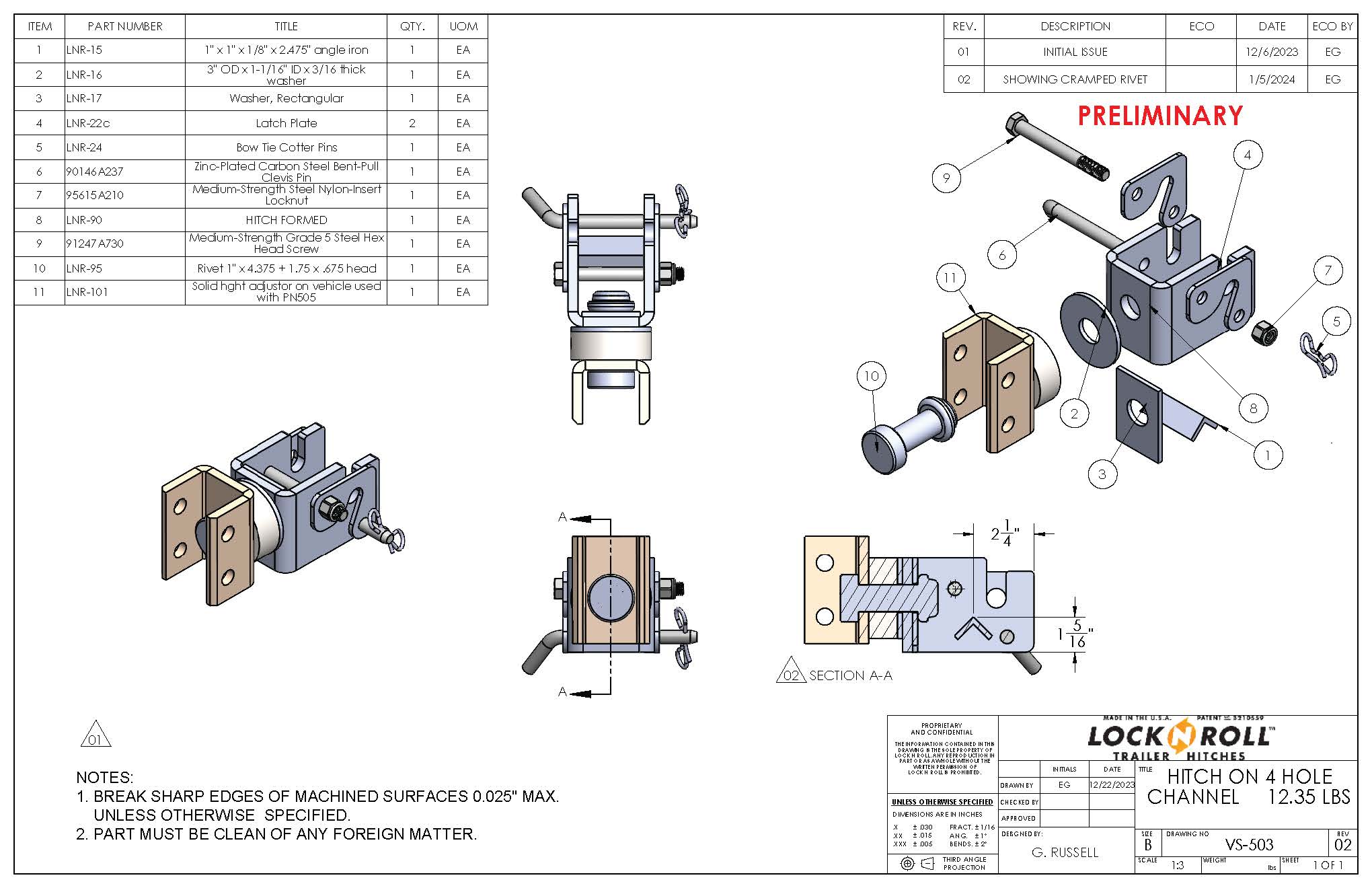 This vehicle side option of Lock N Roll, the worlds best on road off road hitch, has a 2 7/8″ wide, four hole channel that fits and bolts directly inside of a standard, 3 inch wide, height adjustement channel. Mounting holes accommodate industry standard 2” hole spacing for 5/8” bolts. Like all Lock N Roll hitches, this hitch is made of strong, alloy steel with a solid 1″ diameter bearing and a grease port to ensure a long life for your hitch. This hitch is rated at 11,000 pounds gross trailer weight and 1100 pounds tongue weight. Comes with two grade 5 5/8″ bolts and two nylon insert lock nuts. All units exceed the requirements of SAE standard J684 and are tested by independent labs.