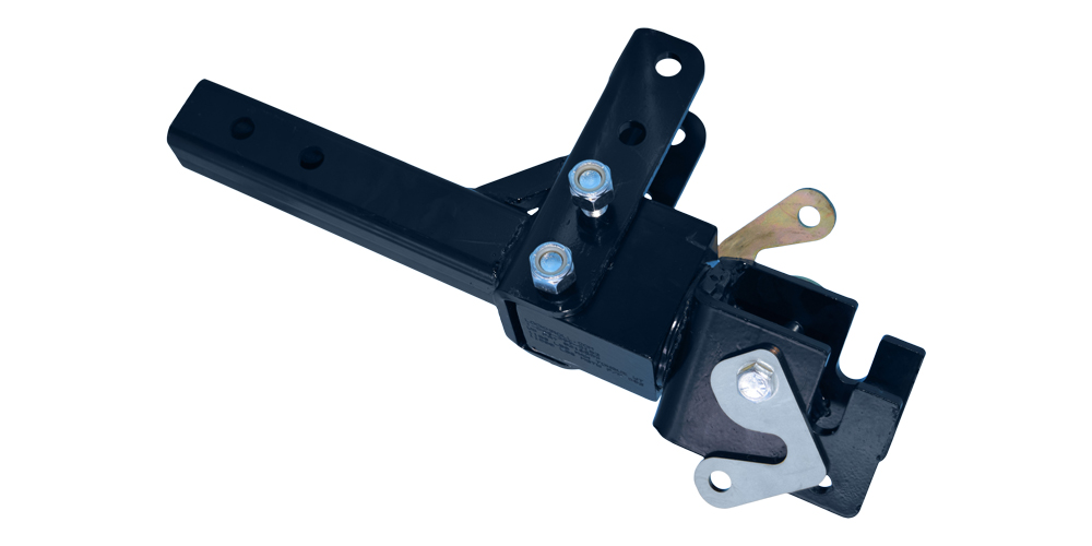 Combination of VS505 and VS503: The inside width of the channel is 3-1/16″.  Bracket material is High Strength/Low Alloy ASTM A572 Grade 50. There are 4 sets of holes allowing for 3-positions. The channel is welded to a 2″ sq x 1/4″ thick wall x 9-1/2″ long tube. Tubing is high quality ASTM A500 with a minimum tensile strength of 58,000 PSI and 23% elongation. The maximum height adjustment is 5-1/2″ as measured from the center of the receiver tube to the center of the Lock N Roll coupling shaft on your trailer. The horizontal distances from the 5/8″ receiver pin holes to the center of the coupling shaft are 14-1/4 and 16-1/4.